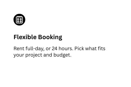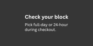 Rental Day/Full‑Day blocks start at your booking time. 24‑hour rentals typically run 9am to 9am the following day (confirm on checkout - changes depending on store hours).